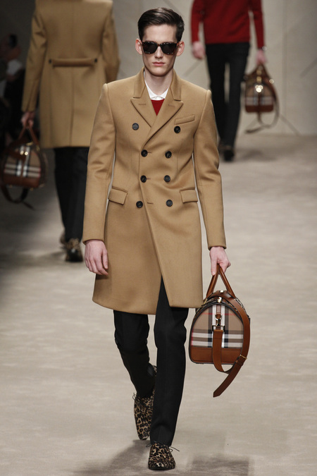 Burberry Prorsum’s Fall 2013 Menswear collection rocked the runway during Milan’s Fall 2013 Fashion Week. Chief Creative Director, Christopher Bailey showed a 48 piece collection that brought forth a continued return to the classic Burberry Check mixed with animal prints of leopard, tiger, and zebra on accessories, bags, shoes, and the lapels of trench coats and blazers. The classic Burberry Check were mixed with solid hues of black, camel, cream, white, red, and olive green. Two of my favorite pieces was patient-leather burgundy trench coat and an olive green military coat. The collection’s mix of fabrics and textures made it must see. These looks will update the modern man’s fall/winter wardrobe. Check out my favorite looks from the collection found on Style.com.