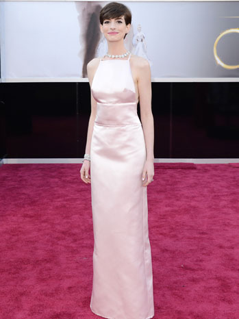 Anne Hathaway’s Prada dress was not my favorite. I really miss the days when she would wear gorgeous Armani Prive gowns, but her duchess satin backless column dress with a questionable cone-like top. I got the direction Anne was going in but come on, her entire wardrobe this entire award season makes me question if she is now dressing herself. Or if she is still working with Rachel Zoe, I would suggest getting your money back because the choices were just horrible!
