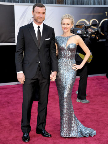 Naomi Watts in custom Giorgio Armani with husband Levi Schrieber in Calvin Klein Collection