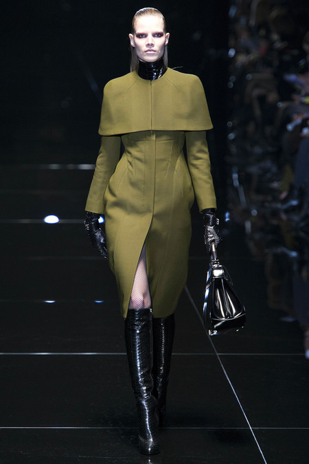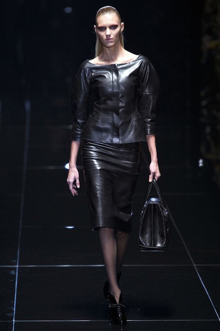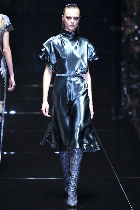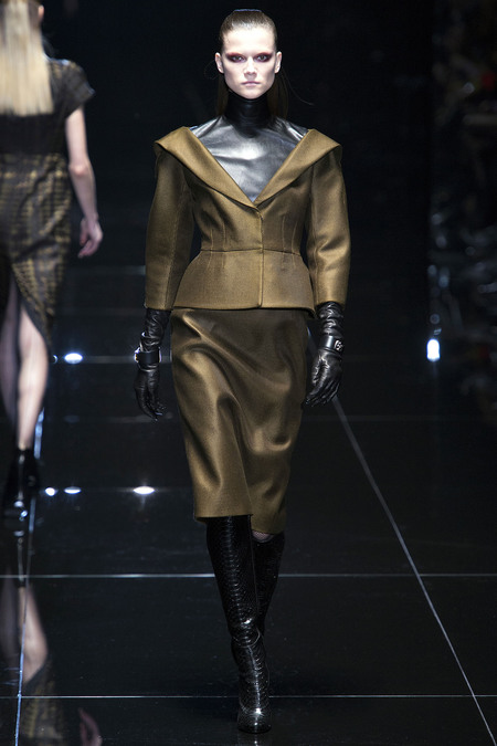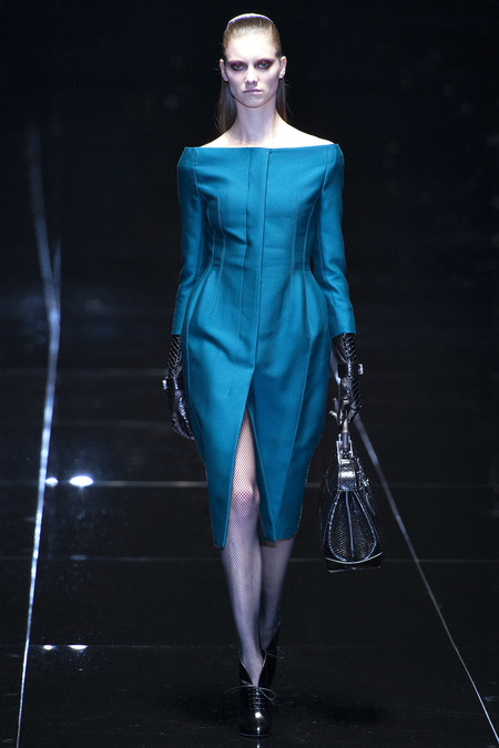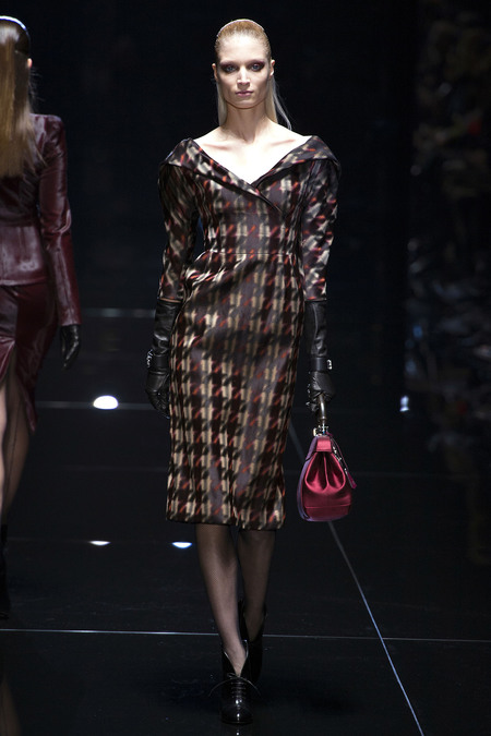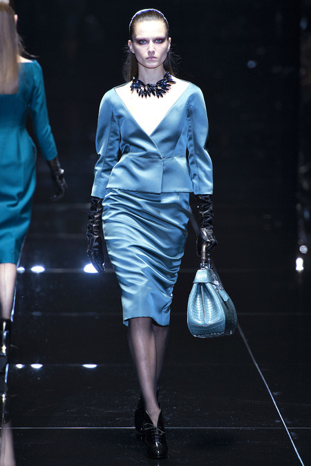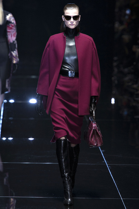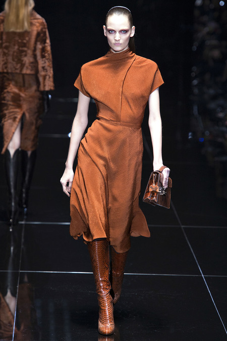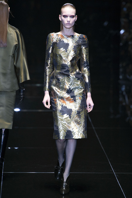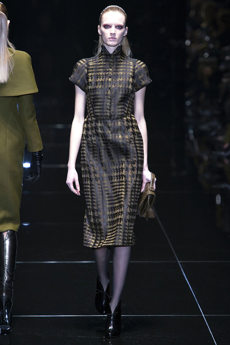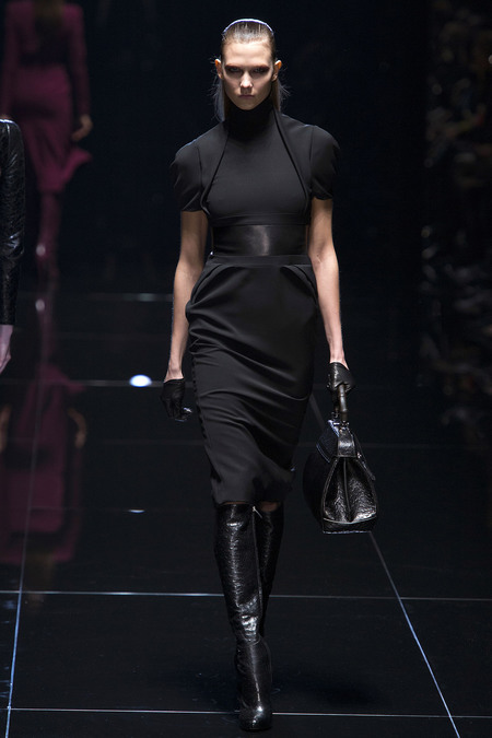 Frida Giannini, Creative Director of Gucci created a dark and moody Fall 2013 Collection. She is a master of transforming the modern woman’s wardrobes that will make them feel strong, powerful and confident.  The separates could work in the boardroom and the streets. The evening gowns detailed with feathers and satins.  Such a luxurious mix of leathers, furs, feathers, and silk satins.  Love it.
