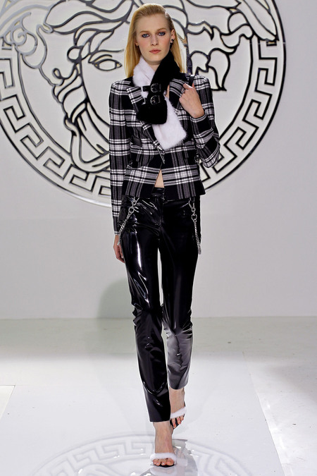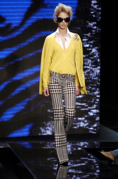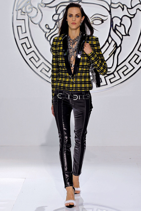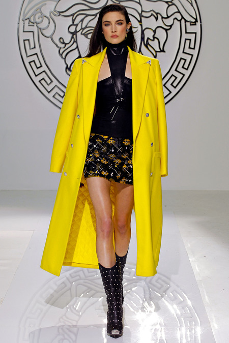 I also found some similarities to the Fall 2013 Collection with Donatella’s Fall 2004 Collection for the house which was a complete punk collection with houndstooth suits and dresses in bright hues of yellow, red, and black. Take a look at some of the Fall 2004 looks and than see many of my favorite Fall 2013 looks.