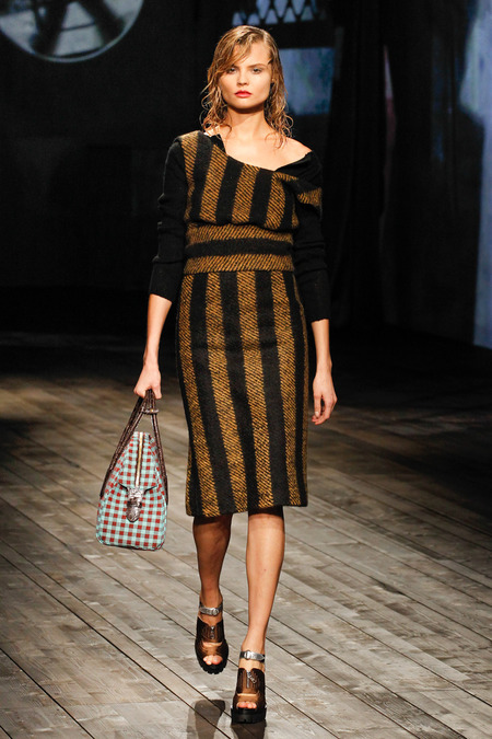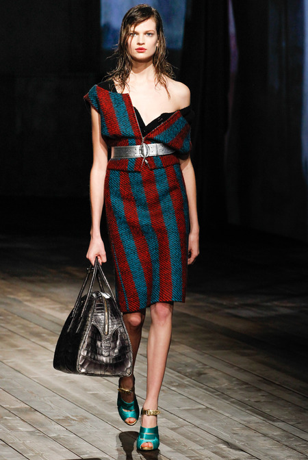 Miuccia Prada is always fashion firestarter. When she creates a collection usually the fashion world follow suit. This season’s Prada woman is a wet head (quite literally) and looked as if she was walking through the rain. Mrs. Prada is always surprises fashion’s elite with a model lineup similar to the Victoria Secret Fashion Show including supermodels Adriana Lima, Liisa Winkler, Mariacarla Boscano, Jessica Stam, Catherine McNeil, Magdalena Frackowiak, Suvi Koponen, Kirsten Owen, Iselin Steiro, and Kasia Struss.