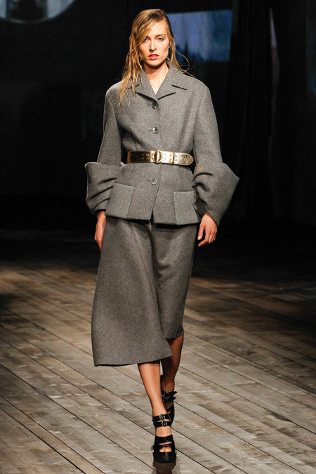 This season’s woman is as always conference in here edgy clothing that seems a little odd but once you look a little bit closer at the vision of Miuccia Prada, you see that all you wants to do is make a woman look and feel like a sophisticated lady. The metallic belts on gorgeous waistcoats and suits were my favorite looks from the collection.