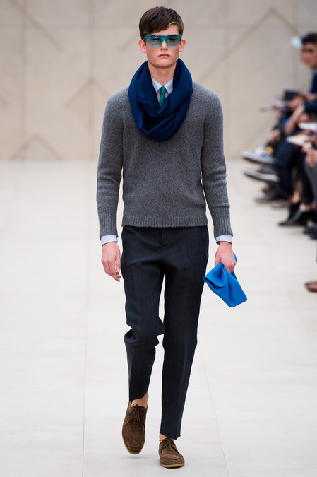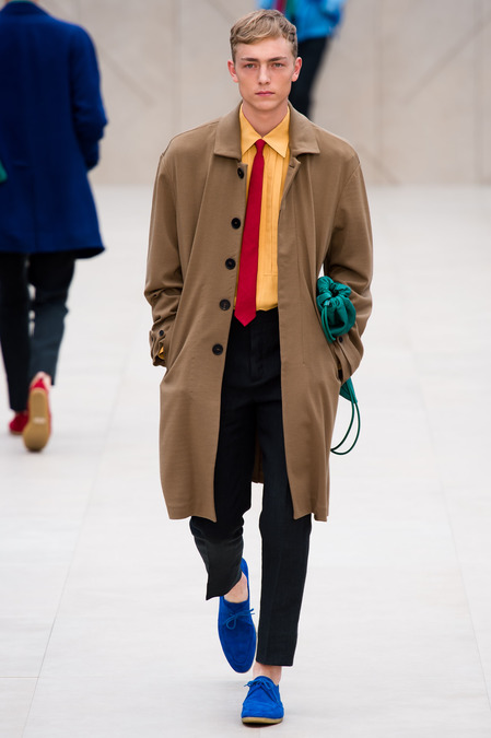 This season, Bailey, created a collection was called “Writers and Painters”. Famed writer, Alan Bennett and Pop Art painter, David Hockney were two artists who inspired the collection. The collection featured bright colors through the jackets, button down shirts, sweaters, ties, pants, and shoes. The runway shoes looked like a suede loafer in every color of the rainbow but two of my personal favorite hues were mustard yellow and red. Cashmere coats and sweaters added warmth in the collection.