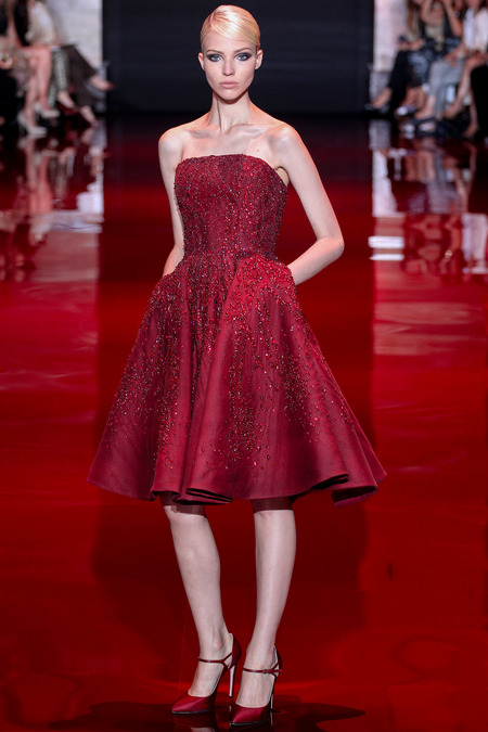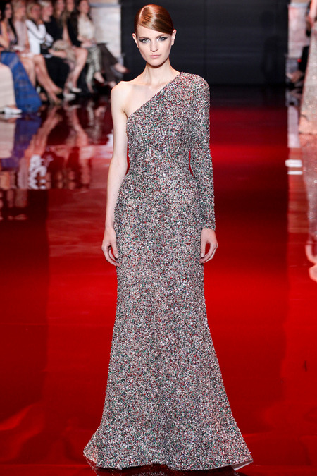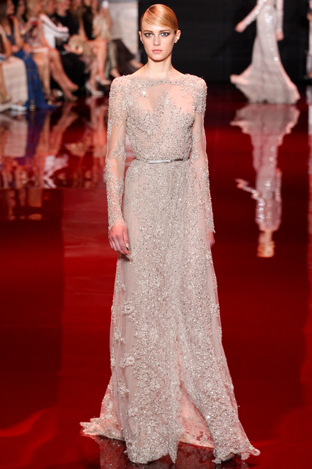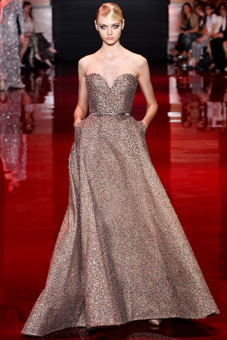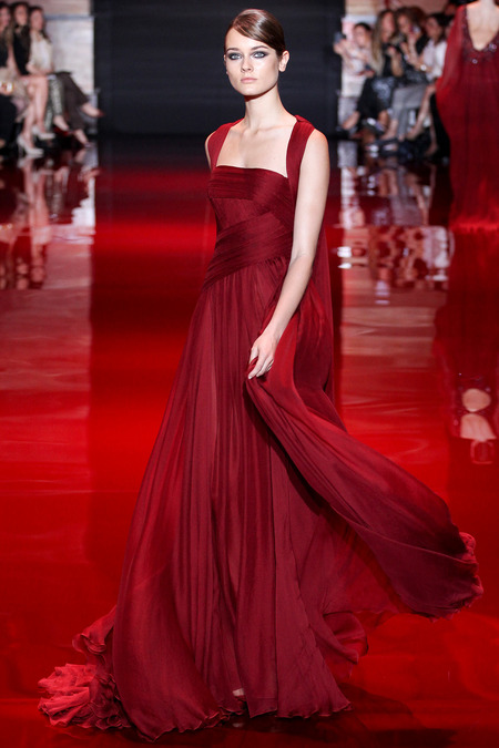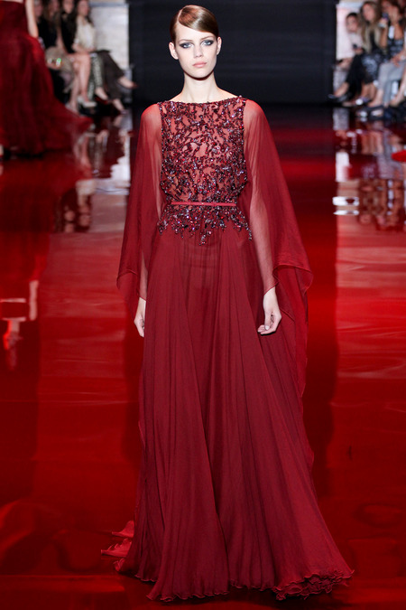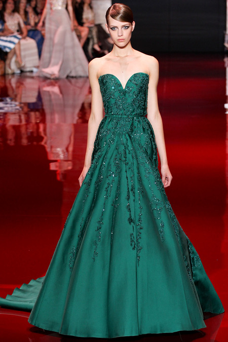 Elie Saab’s Fall 2013 Couture collection was seemed to have royal theme with gowns in shades that matched the stones and gems you would find on a crown including rubies, emeralds, diamonds, sapphires, amethysts, opals, blue topaz, and black diamonds. There is never an Elie Saab dress that I hate each piece in this collection is work of art and felt that rather than choosing a few of my favorite dresses that I would share the entire collection. It will groups of color of gowns.