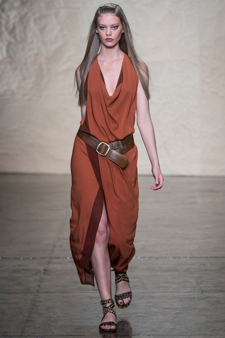 Donna Karan might have started her career in fashion with her “7 Easy Pieces” but this season she takes the New York fashion girl on a road trip through the American Southwest. Her collection features gorgeous shades of blue, brown, terracotta, and spice. Check out a few of my favorite pieces.