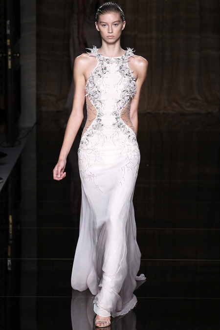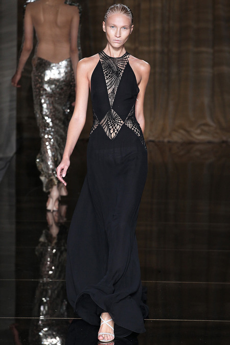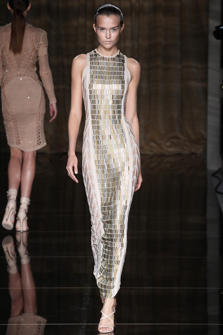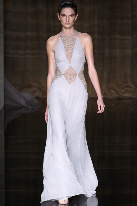 Julien Macdonald has been a fixture on the London and Paris Fashion Week scenes for almost two decades. He had a very public appointment to the House of Givenchy in the late 1990s where he used his skills in knitwear to bring a new dimension. His Scottish roots and love of knitwear will always be a part of the Julien Macdonald DNA of his ready to wear line. Another piece of this British label is his love of glamorous gowns and usage of embroidery. Metallic and white were major hues seen in this collection. This season also saw a lot of inspiration from dance. Check out a few of my favorite pieces.